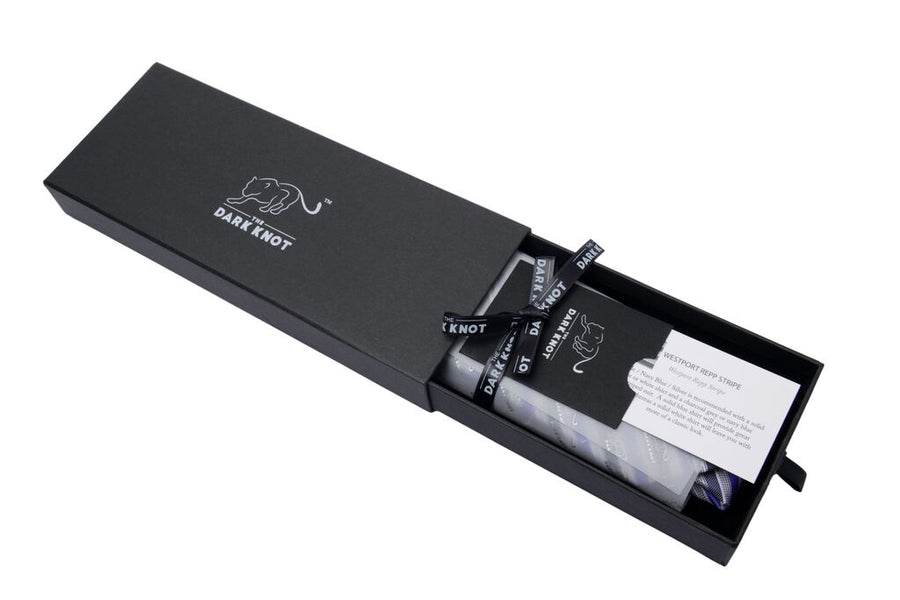 Hence, each of our ties & accessories come presented in an elegant black gift box, along with a card with recommendations for matching attire. Never leave your house mismatched again!